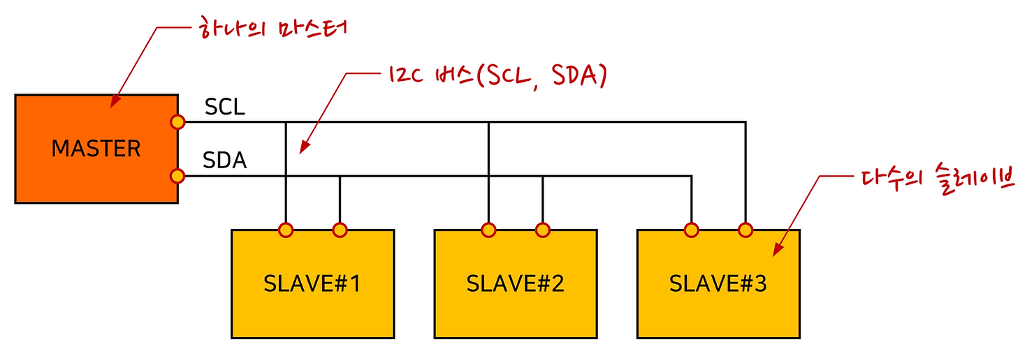 - 7bit의 주소 공간 사용 => I2C에 최대 연결할 수 있는 장치가 128개
