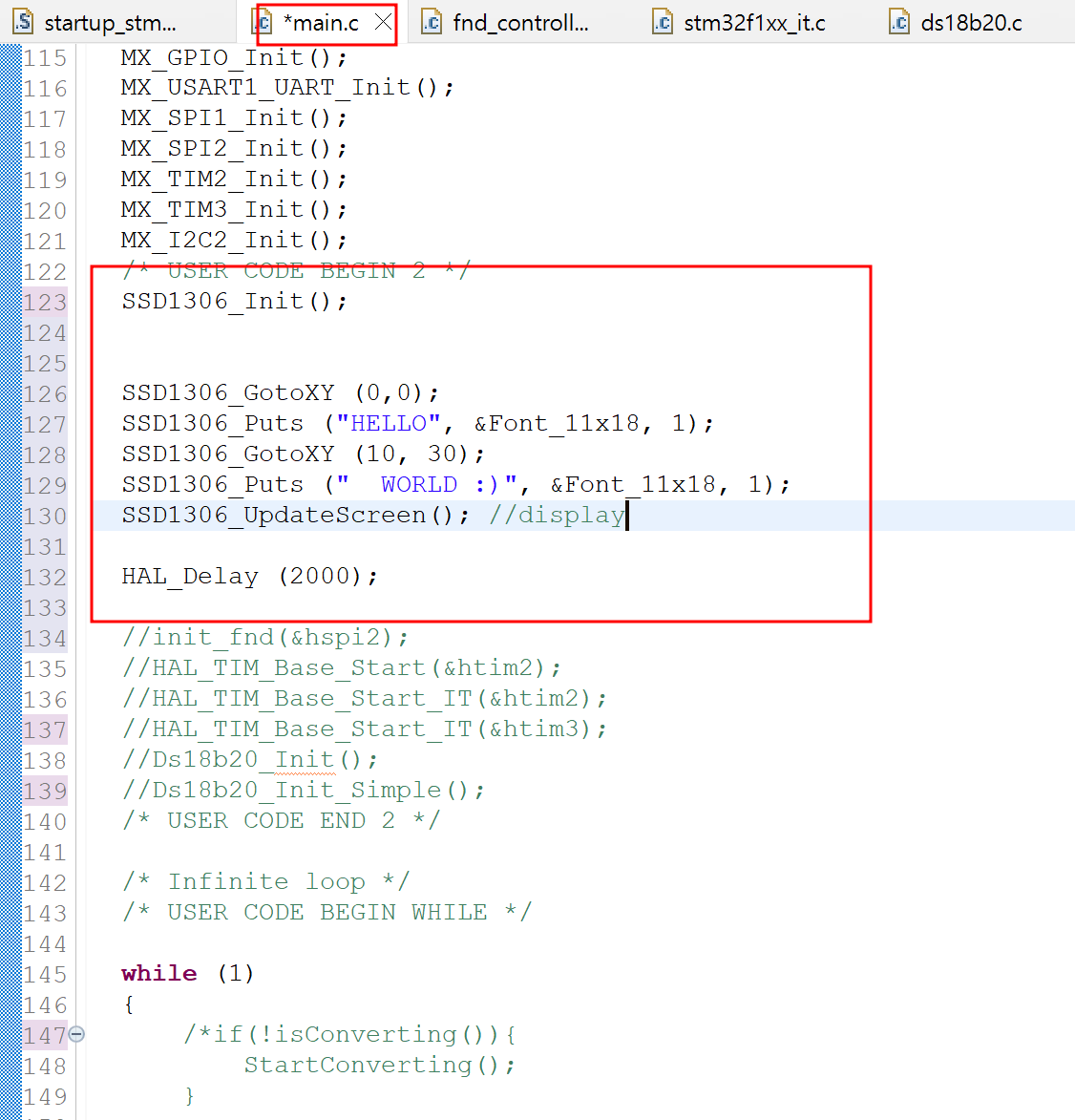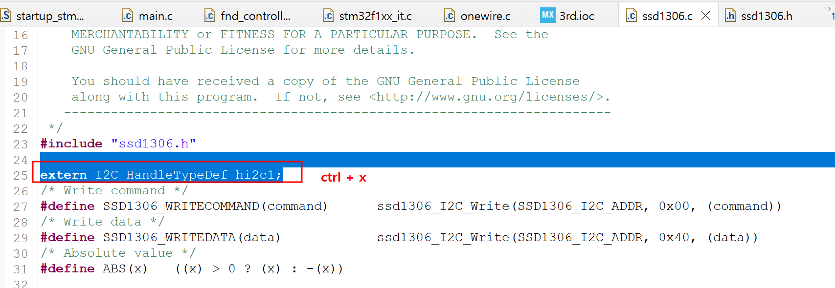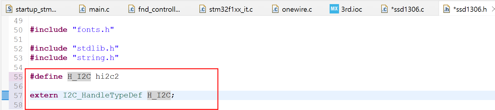 - ssd1306.c 내에서 모든 hi2c1을 H_I2C로 바꾸기