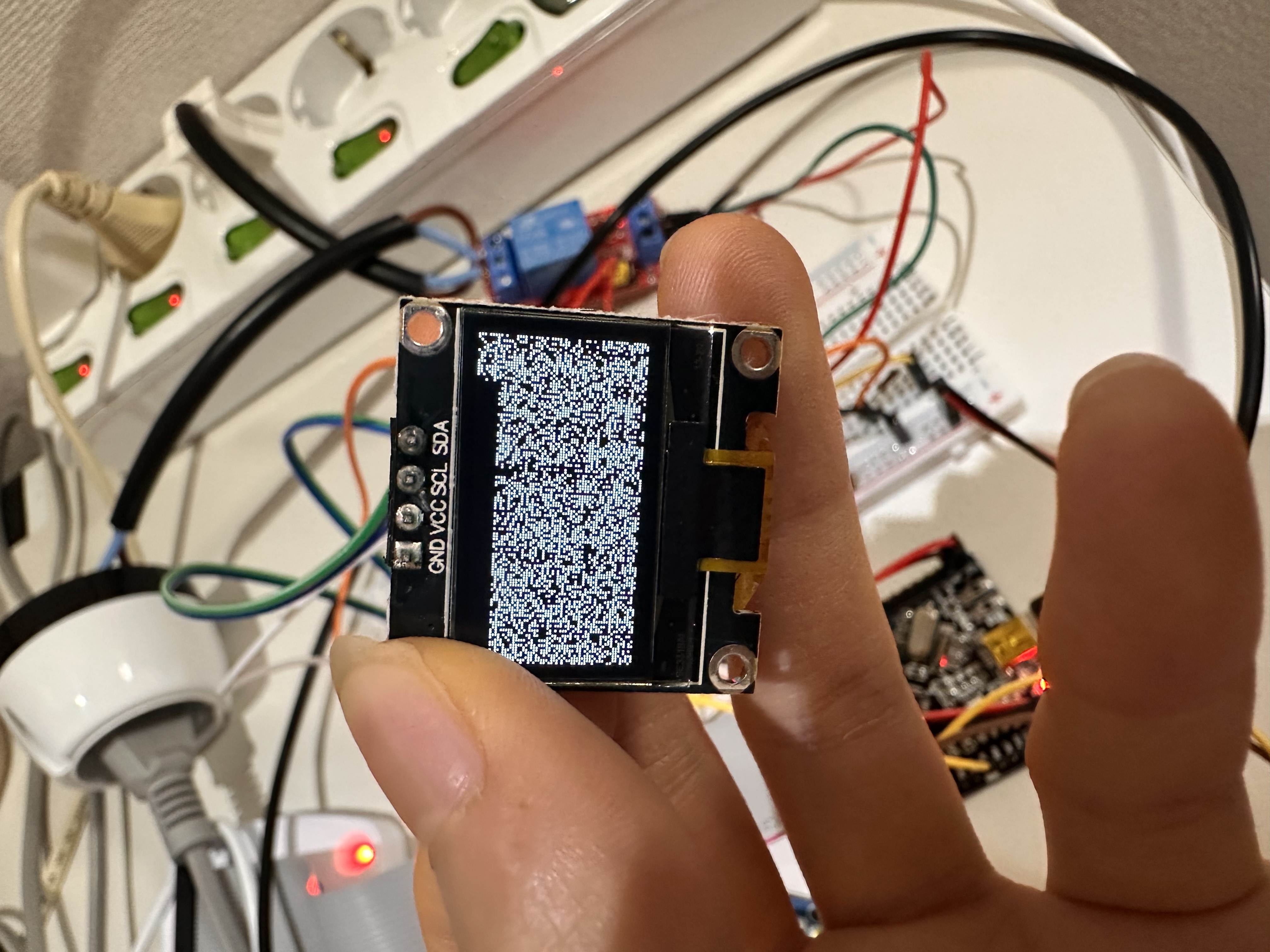 - 주황 수컷-암컷 점퍼선으로 OLED의 VCC와 빵판의 + 연결