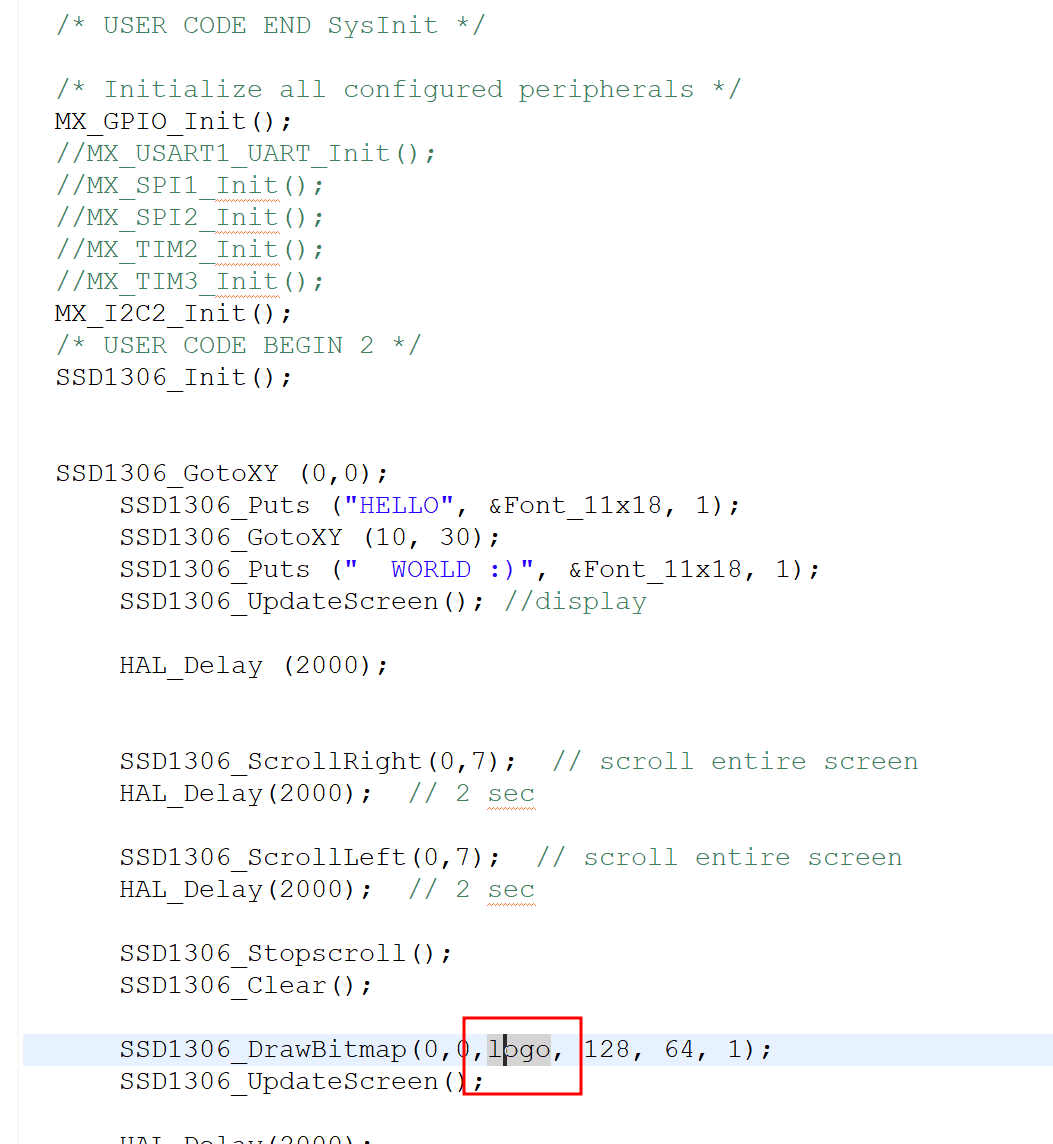 - SSD1306_UpdateScreen(); 함수를 통해 버퍼에 써놓은 값들을 I2C 통신을 통해서 칩에 보내고 그것들이 OLED 모듈에 표현(화면 갱신)