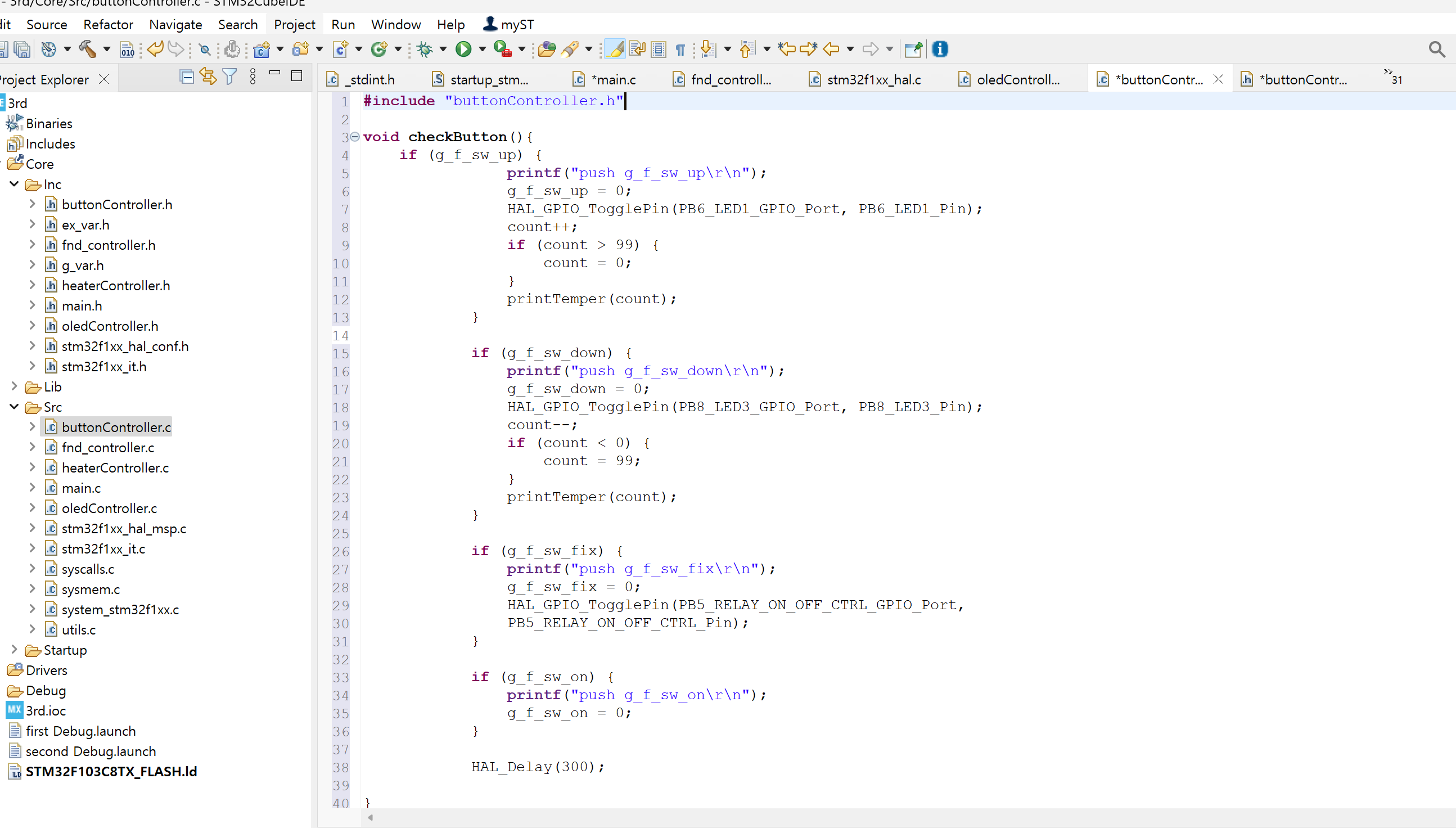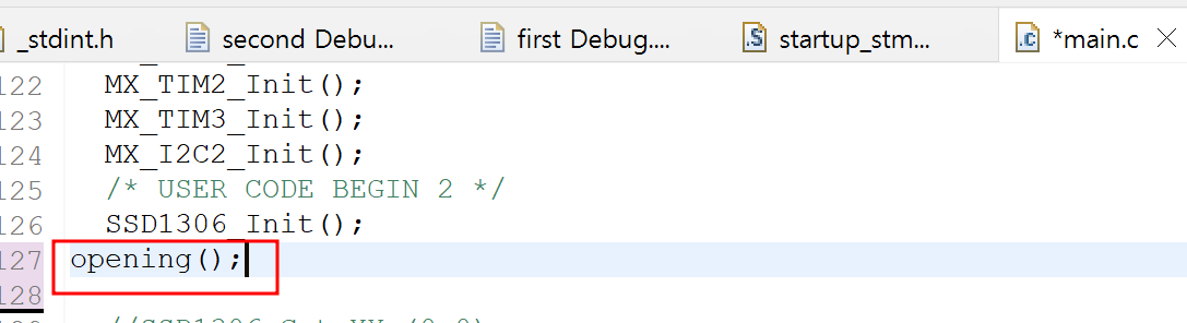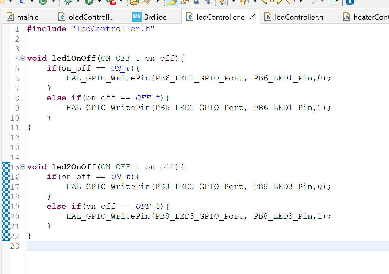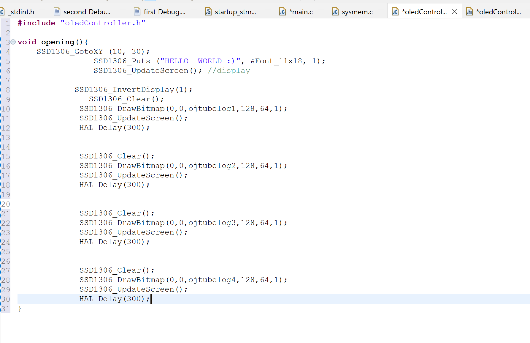 - oledController.c에 사진1처럼 소스코드 추가한 후에 <stdio.h> include하고 헤더파일에도 함수 원형 선언