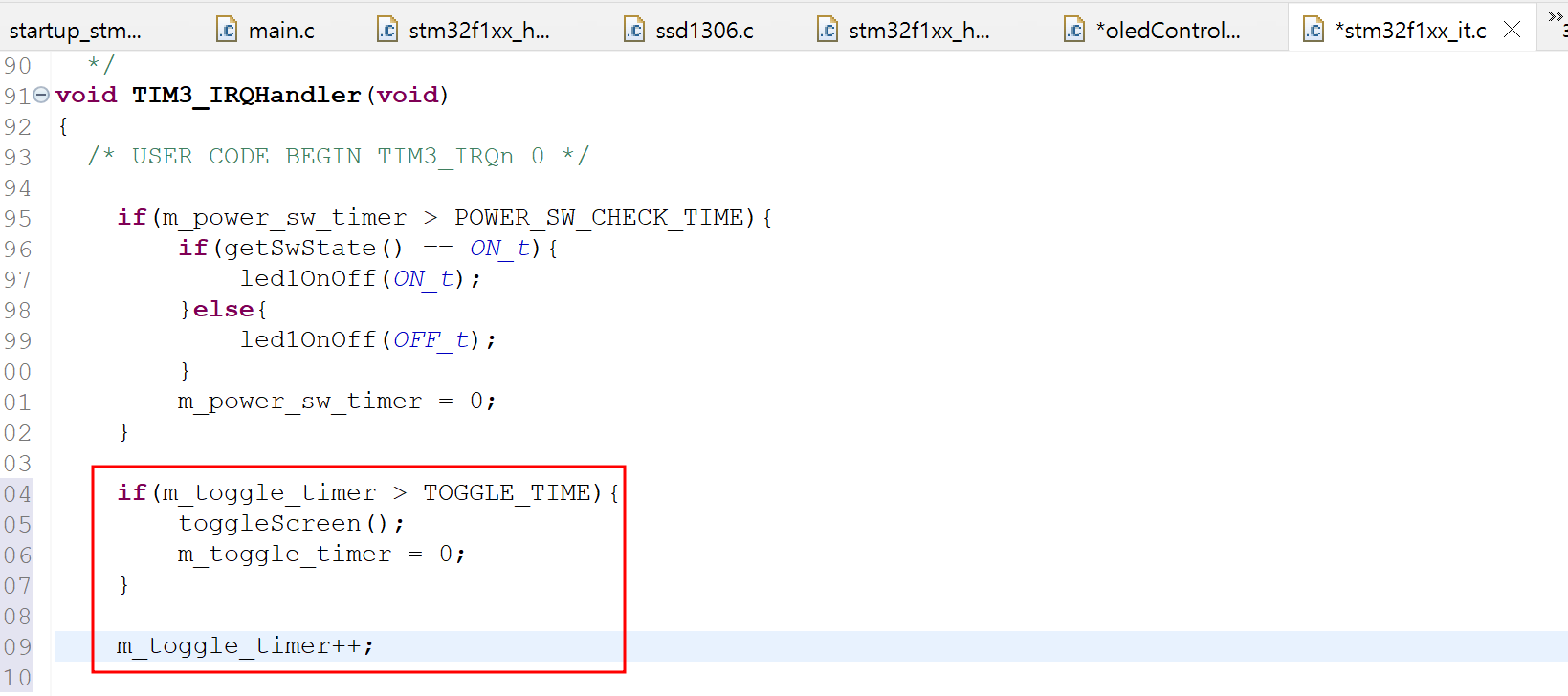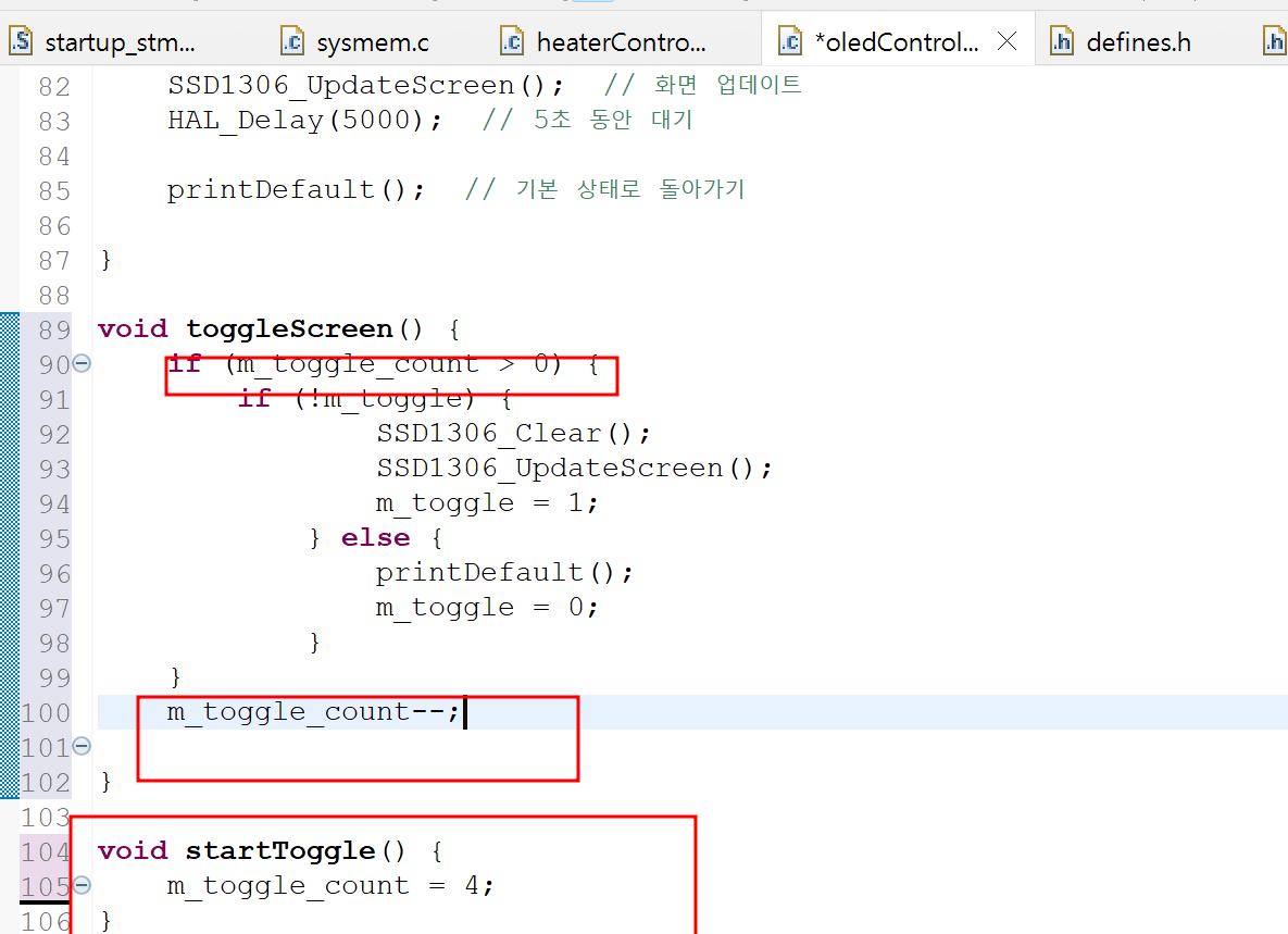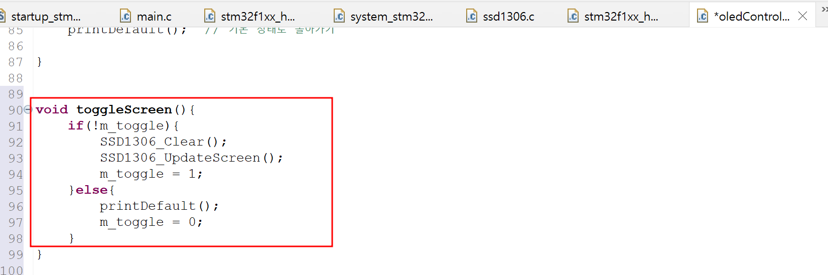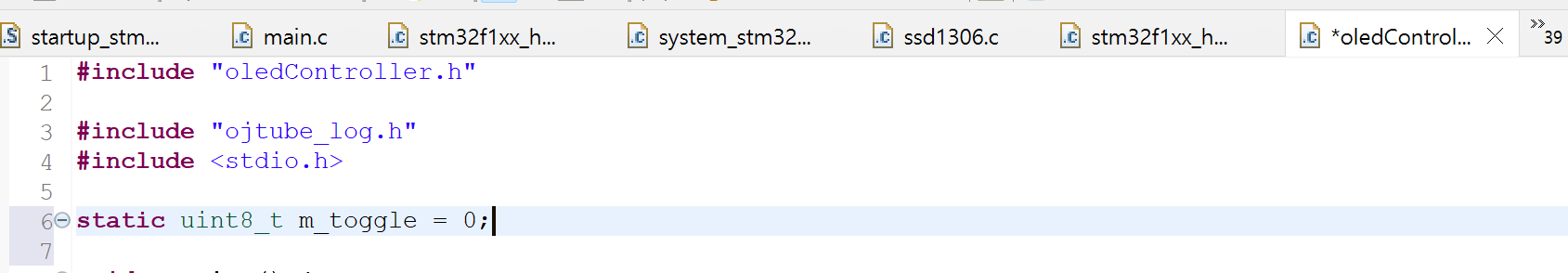 - 이때, oledController.c에서 static uint8_t m_toggle_count = 0; 선언