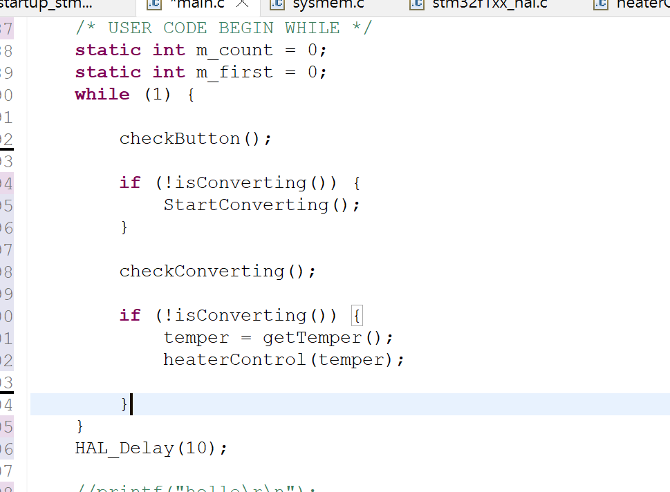 - 히터가 켜져있는 상태일 때, 현재 온도가 목표 온도와의 차이가 5도 이하일 때 히터를 끄도록