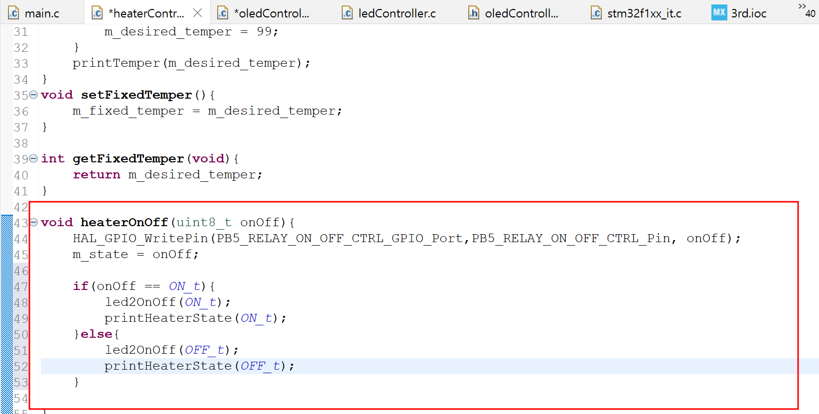 - 히터를 끄고 킬 때 led도 껐다켜지고 oled에도 표시되도록 설정