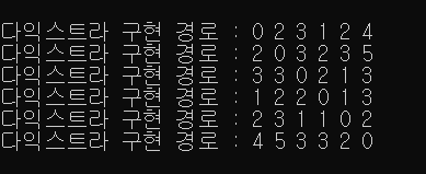 printf("%d번 노드에서 출발한 다익스트라 경로 : ", start+1);